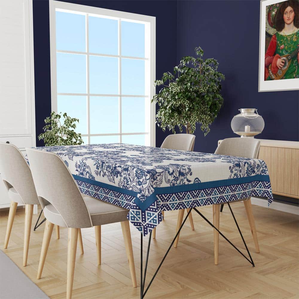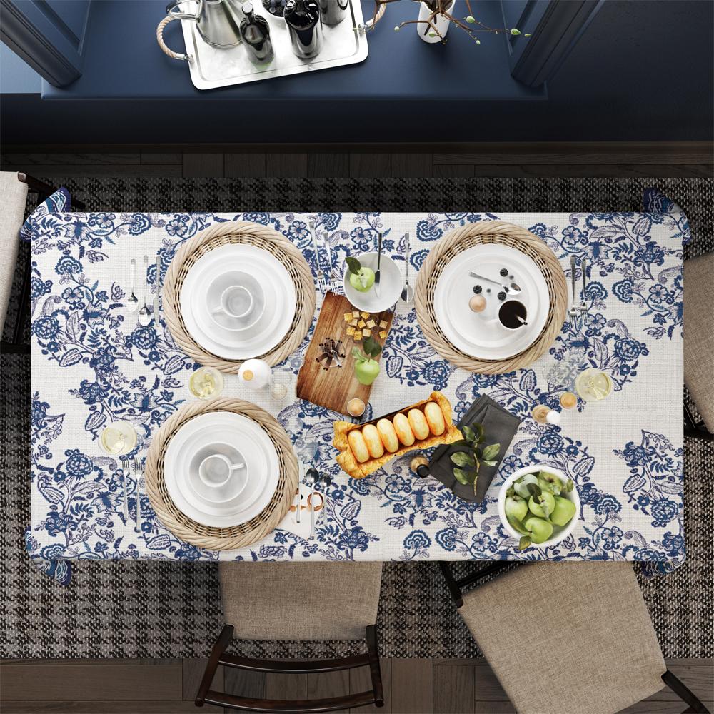Mavi Çiçek Desen Masa Örtüsü
